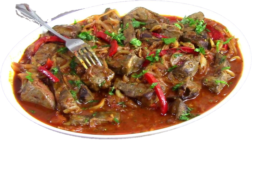 Continut: ficatei de pui, ceapa, ardei gras, rosii, sare, piper, condimente.